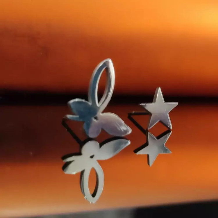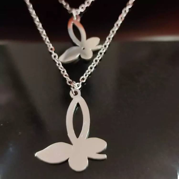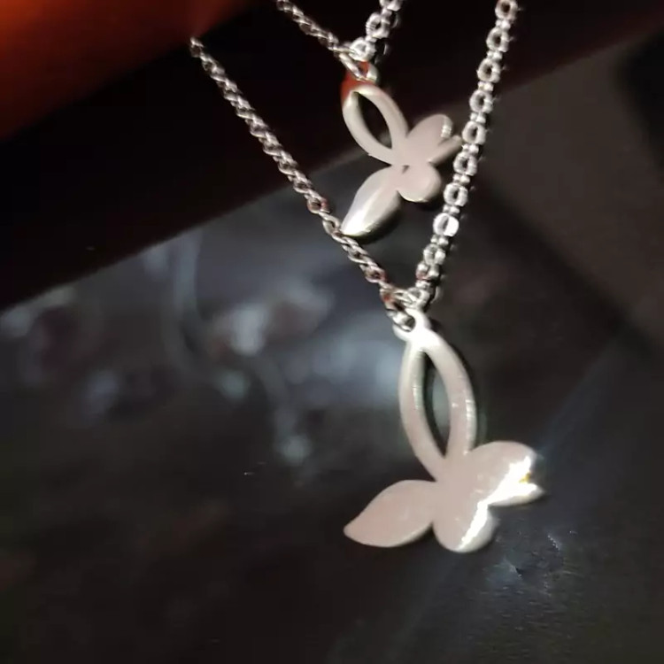 نیم ست دخترانه شاپرک نقره ای شامل گردن آویز زنجیر و گوشواره (گلگوش). طراحی چشم گیر و ترکیب نقره ای براق و سند پلاست زیبایی خاصی را به این کار بخشیده