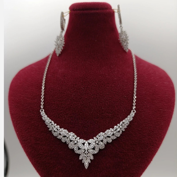 نیم ست نقره جواهری تمام نگین شامل گردن آویز و گوشواره و دستبند با زیبایی خیره کننده و کیفیت عالی