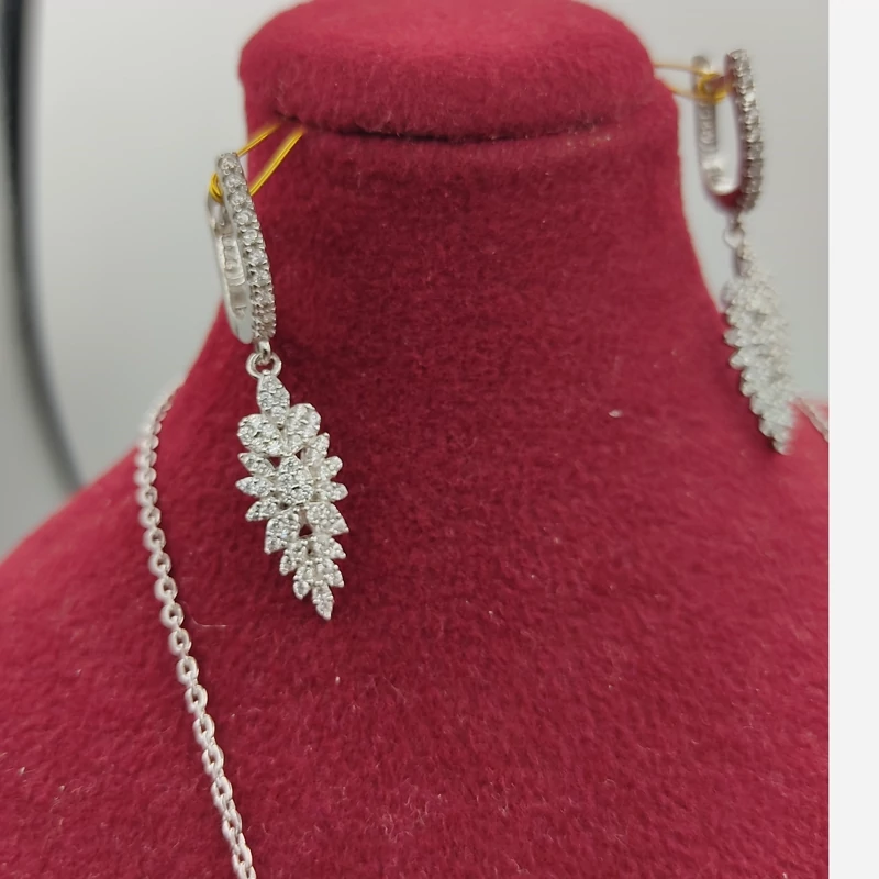 نیم ست نقره جواهری تمام نگین شامل گردن آویز و گوشواره و دستبند با زیبایی خیره کننده و کیفیت عالی