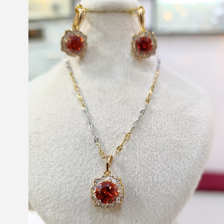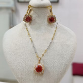 نیم ست طرح طلا شامل گوشواره و پلاک و زنجیر با نگین سرخ بسیار زیبا و درخشان