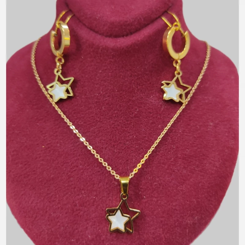 نیم ست ستاره نگین صدفی طلایی استیل رنگ ثابت و ضد (پس کرایه)حساسیت 2 (پس کرایه)