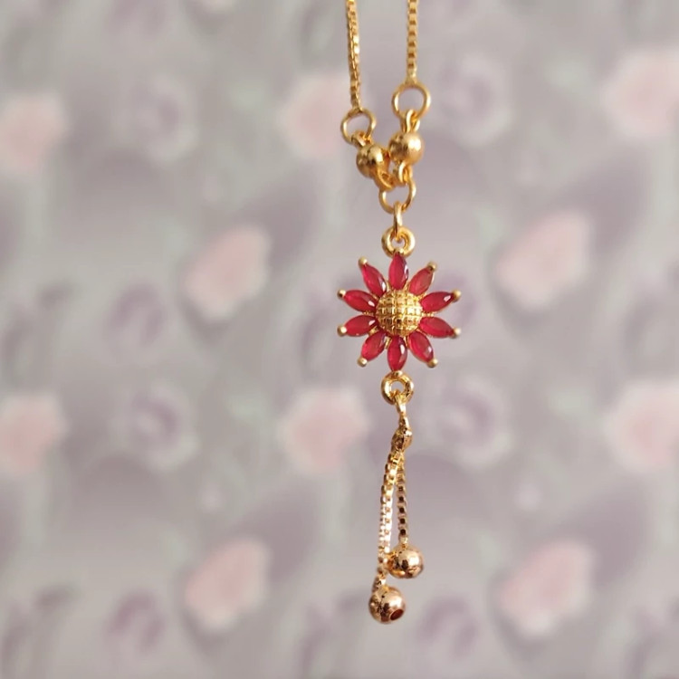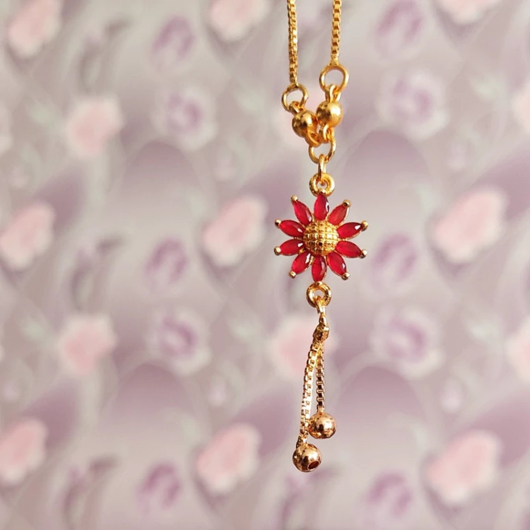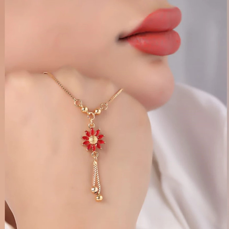 گردن آویز گل سرخ با ترکیب ر رنگ طلایی و سرخ بسیار شیک مناسب دختر خانمها و خانم های شیک پوش ضد حساسیت و رنگ ثابت