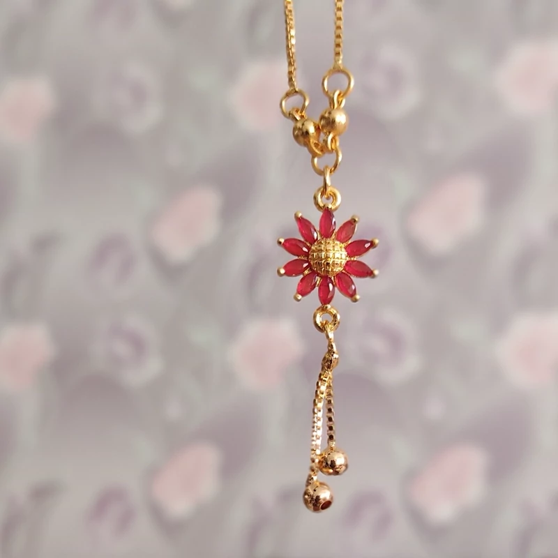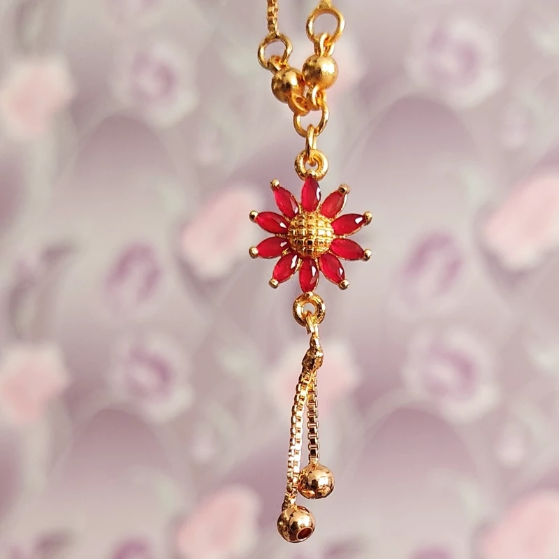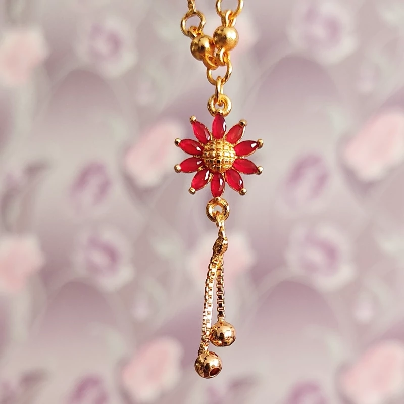 گردن آویز گل سرخ با ترکیب ر رنگ طلایی و سرخ بسیار شیک مناسب دختر خانمها و خانم های شیک پوش ضد حساسیت و رنگ ثابت