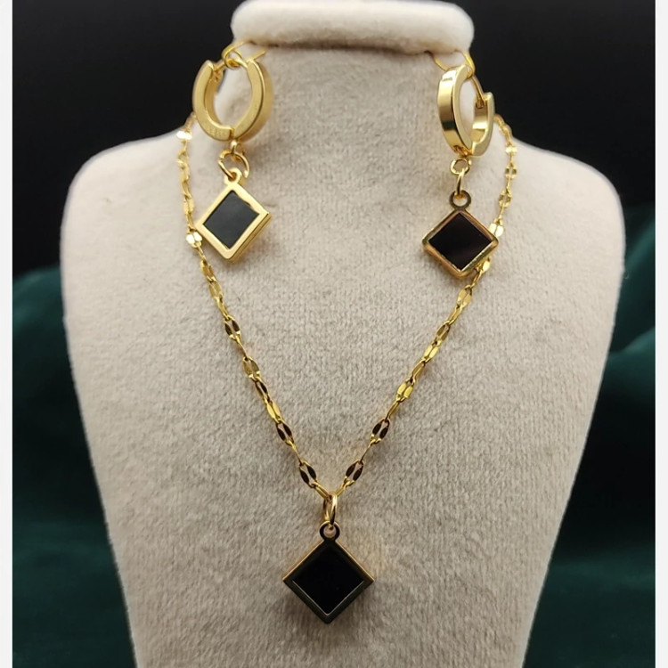 نیم ست مینیمال لوزی طلایی استیل رنگ ثابت و ضد حساسیت (پس کرایه)