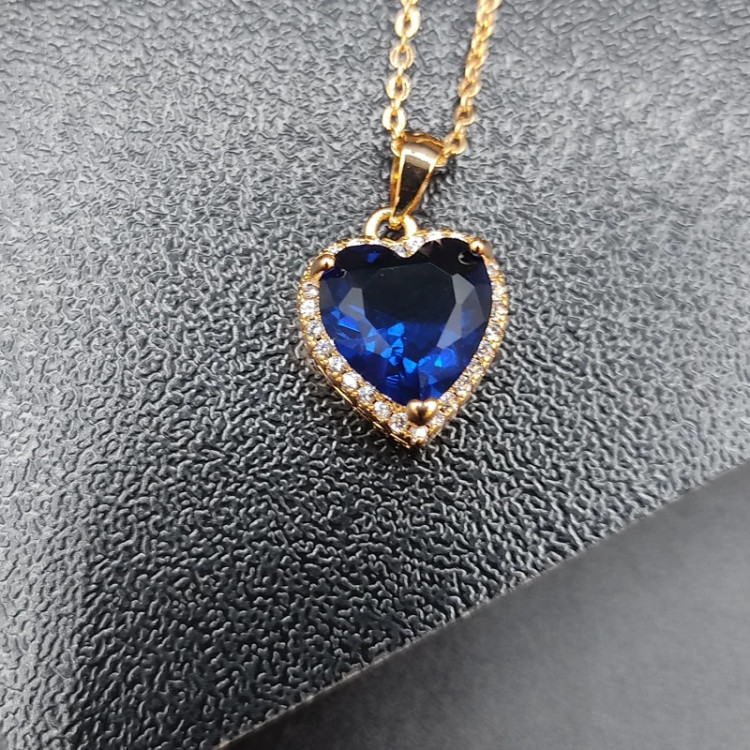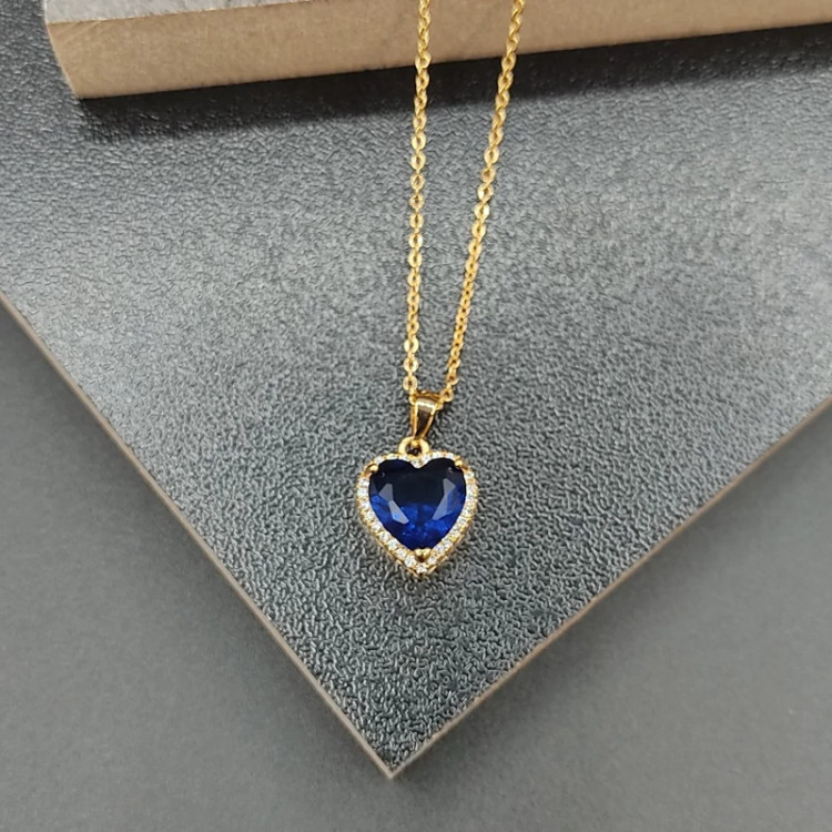 نیمست قلب جواهری با نگین های اتریشی کیفیت فوق العاده در دو رنگ یاقوت کبود و سفید تراش الماسی