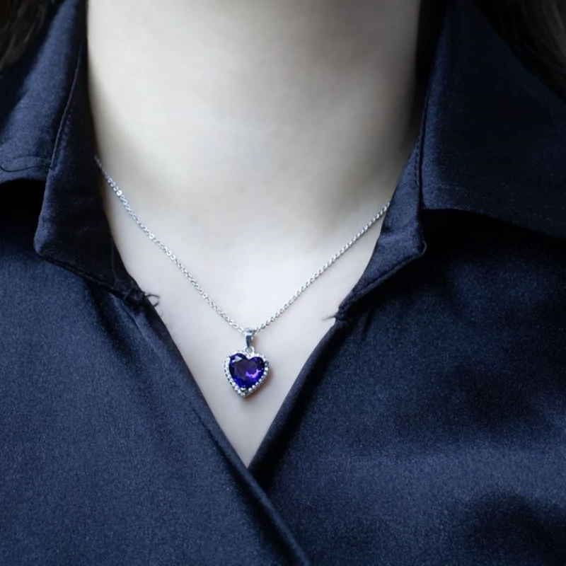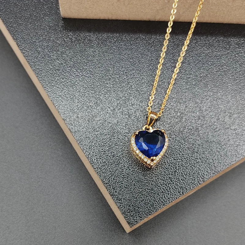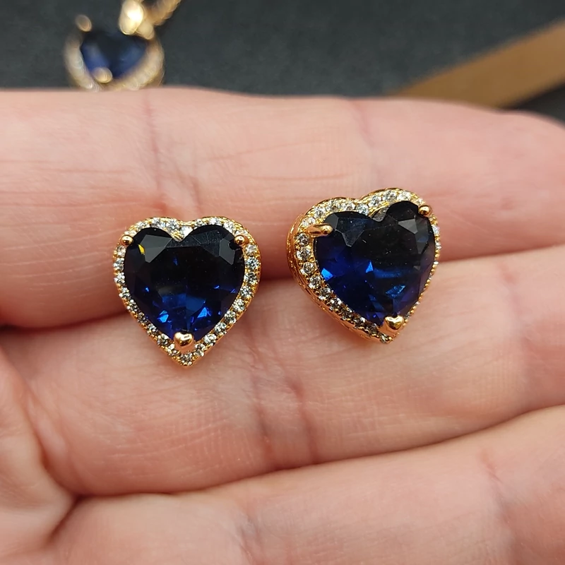نیمست قلب جواهری با نگین های اتریشی کیفیت فوق العاده در دو رنگ یاقوت کبود و سفید تراش الماسی