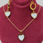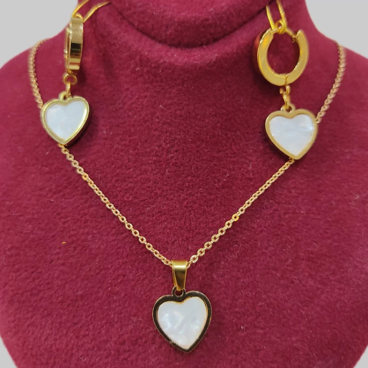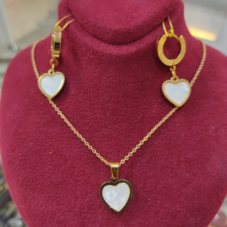 نیم ست قلب نگین صدفی طلایی استیل رنگ ثابت و ضد حساسیت