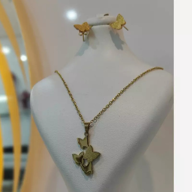 نیم ست پروانهای استیل طرح طلا رنگ ثابت و ضد حساسیت