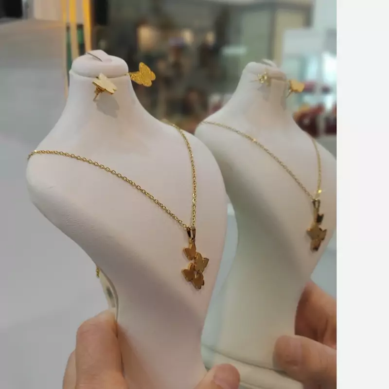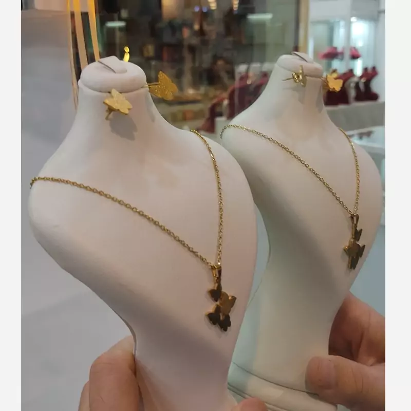 نیم ست پروانهای استیل طرح طلا رنگ ثابت و ضد حساسیت