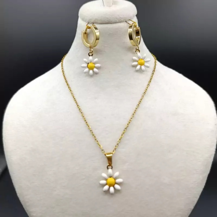 نیم ست گردنبند و گوشوار گل بابونه استیل رنگ ثابت و ضد حساسیت (پس کرایه)