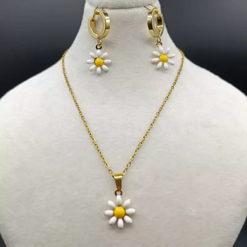 نیم ست گردنبند و گوشوار گل بابونه استیل رنگ ثابت و ضد حساسیت (پس کرایه)