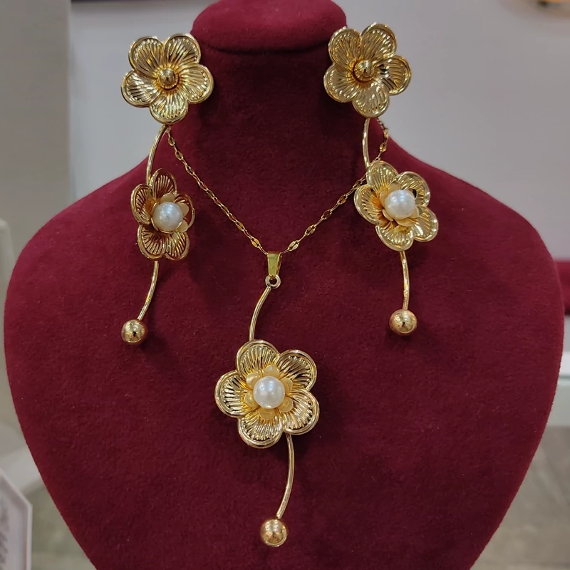 نیم ست گل فشن رنگ طلایی رنگ ثابت و ضد حساسیت