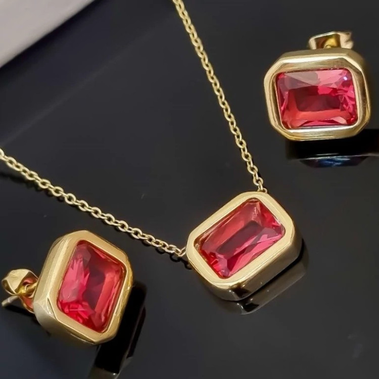 نیم ست استیل جواهری طرح یاقوت (پس کرایه)