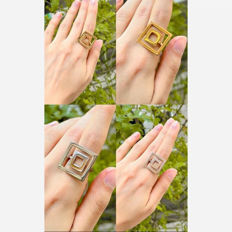 انگشتر فشن مربعی استیل طلایی و نقره ای (پس کرایه)
