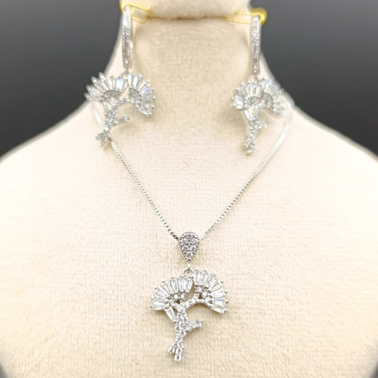 نیم ست جواهری نقره عیار 925 طرح گل (پس کرایه)