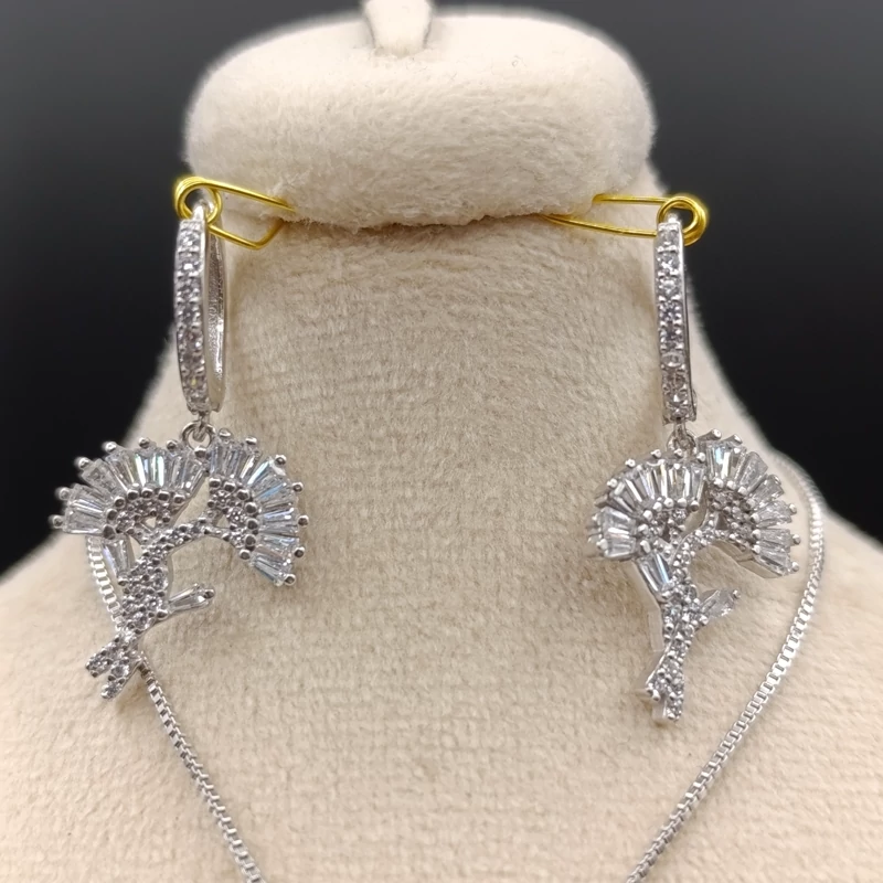 نیم ست جواهری نقره عیار 925 طرح گل (پس کرایه)