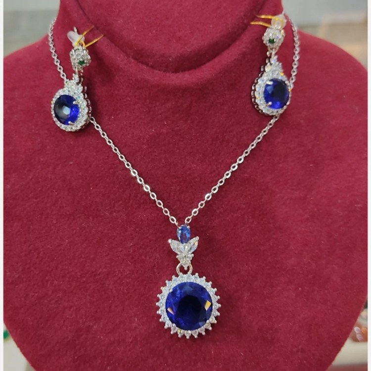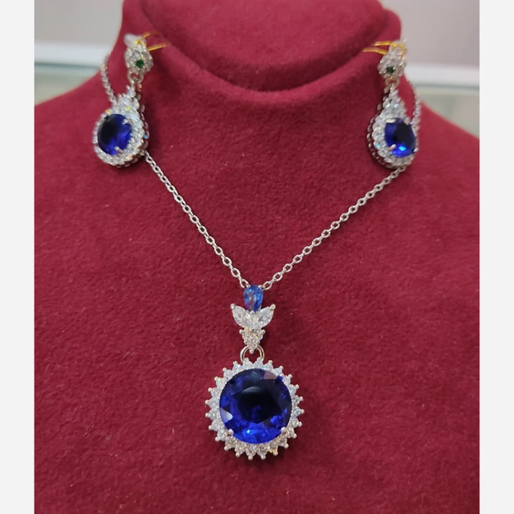 نیم ست مجلسی خورشید نیمست جواهری طرح یاقوت کبود (پس کرایه)