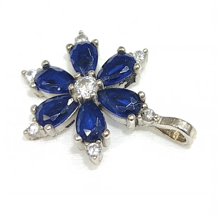 گردن آویش نقره با بهترین عیار طرح دانه برف با نگینهای طرح یاقوت کبود