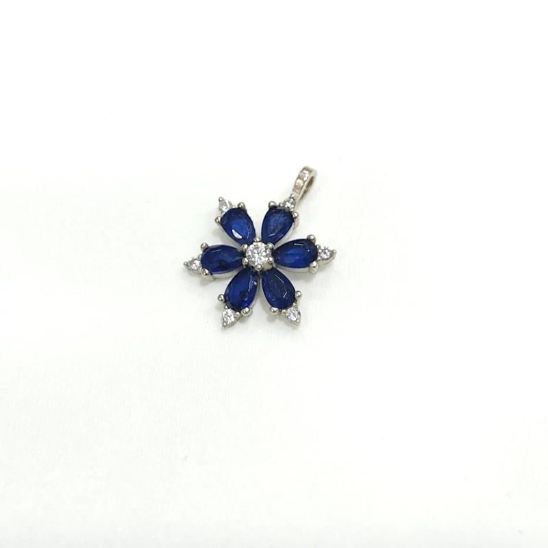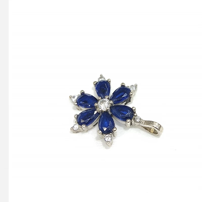 گردن آویش نقره با بهترین عیار طرح دانه برف با نگینهای طرح یاقوت کبود