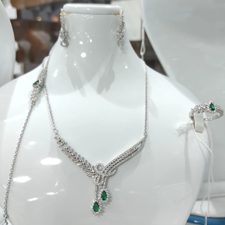 نیم ست جواهری نقره عیار 925 طرح زمرد (ارسال رایگان)
