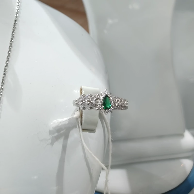 نیم ست جواهری نقره عیار 925 طرح زمرد (ارسال رایگان)