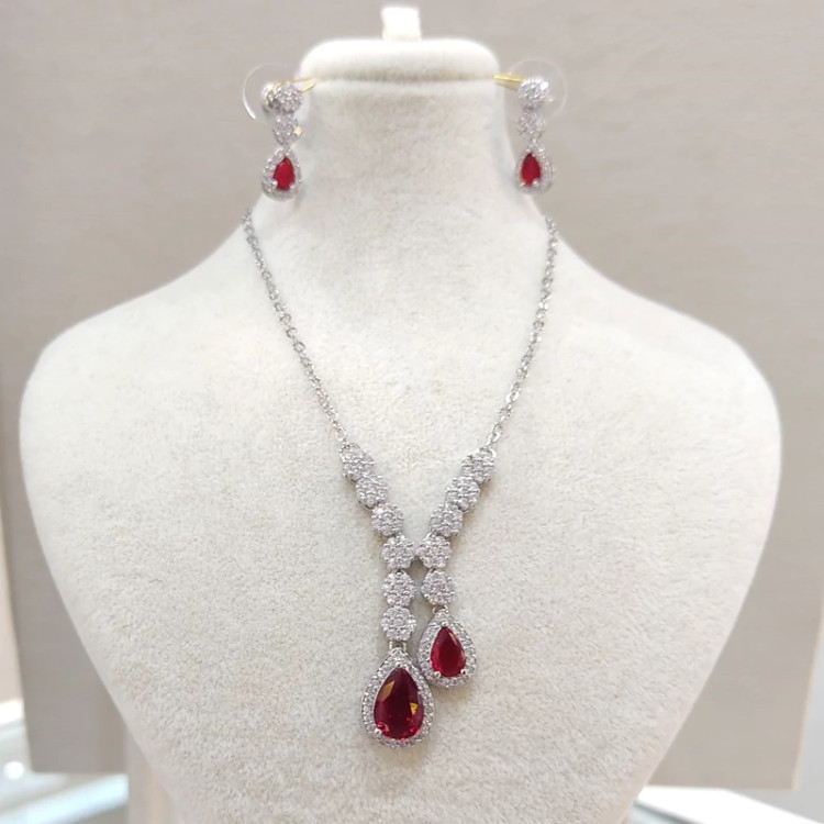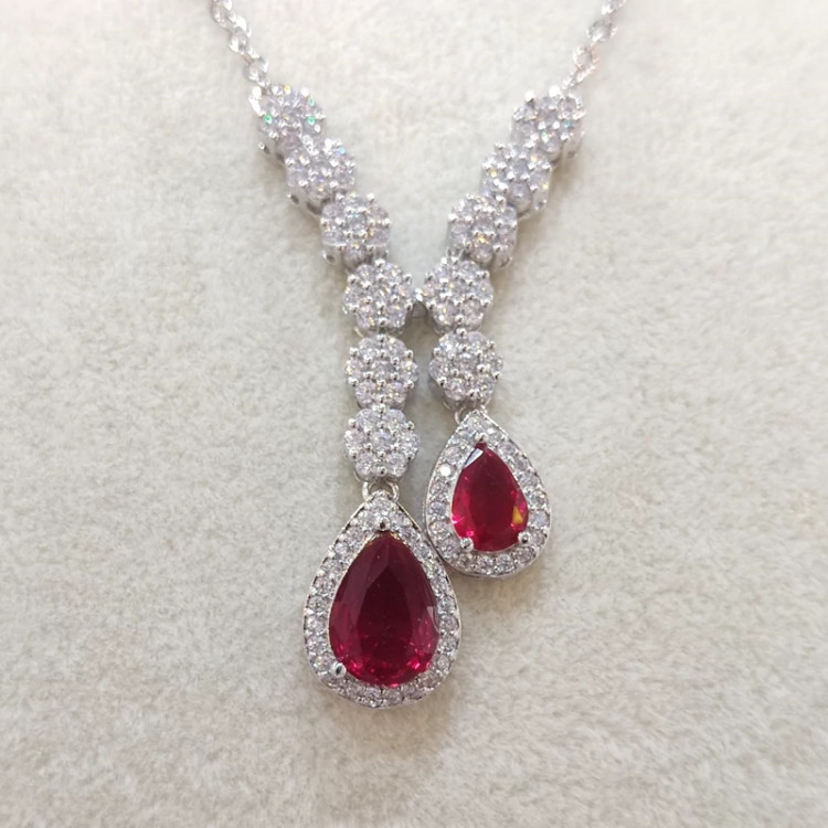 نیمست مدل پاپیونی با نگین یاقوتی از برند فشن، ترکیبی از لطافت طراحی و شکوه سنگهای قیمتی.