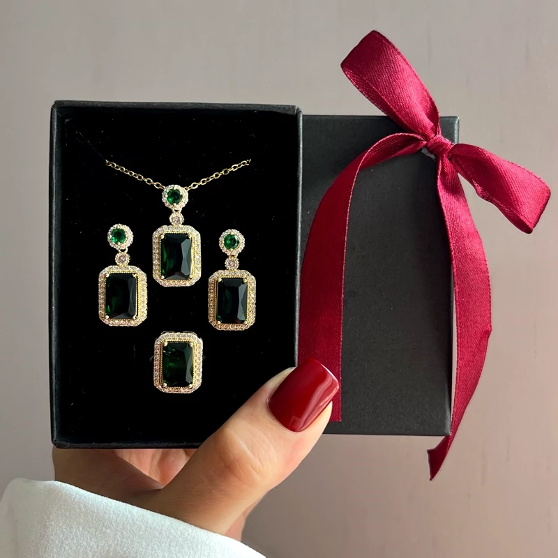 نیم ست مجلسی نگین سوارسکی نیمست جواهری نقره ای(پس کرایه)