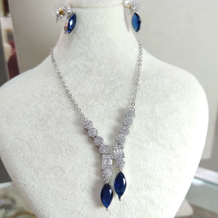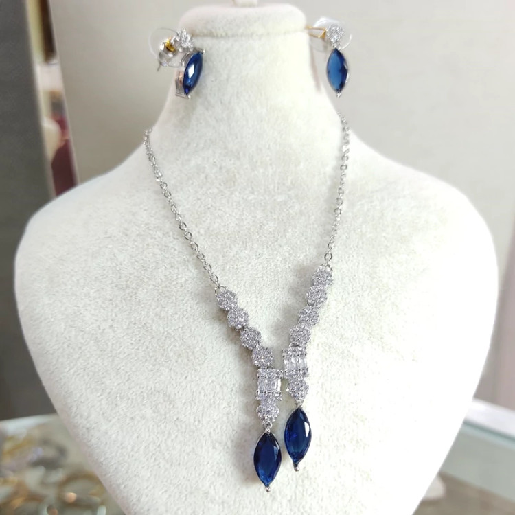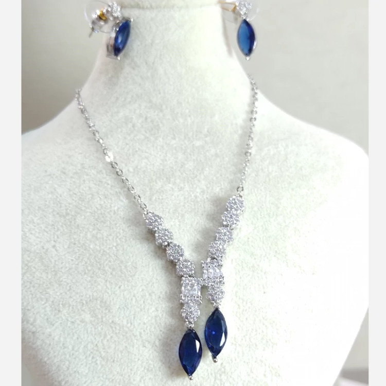 نیم ست جواهری پاپیونی مدل یاقوت کبود مناسب هدیه (پس کرایه)