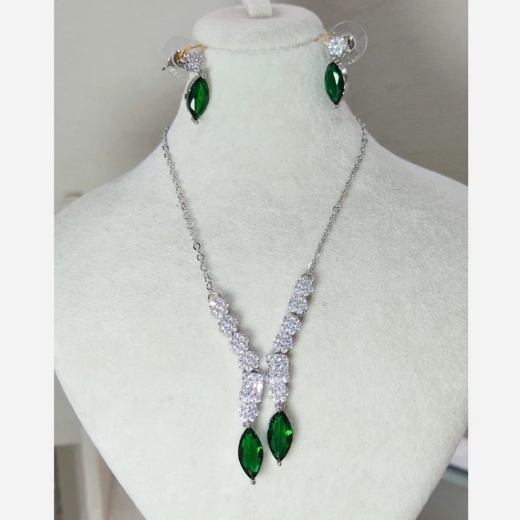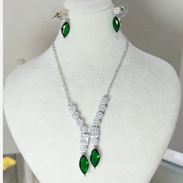 نیم ست جواهری پاپیونی زمردی مناسب هدیه (پس کرایه)