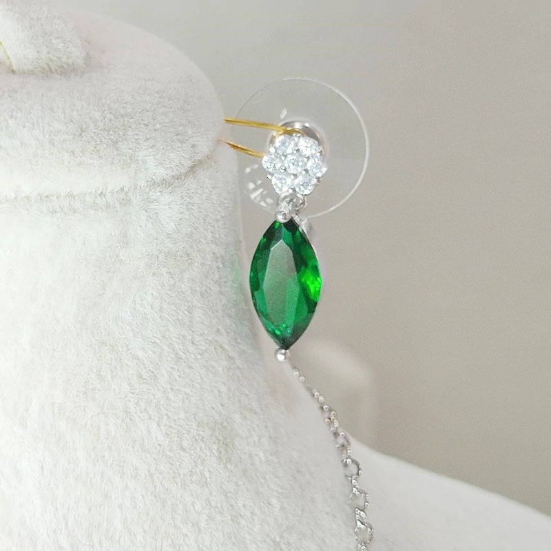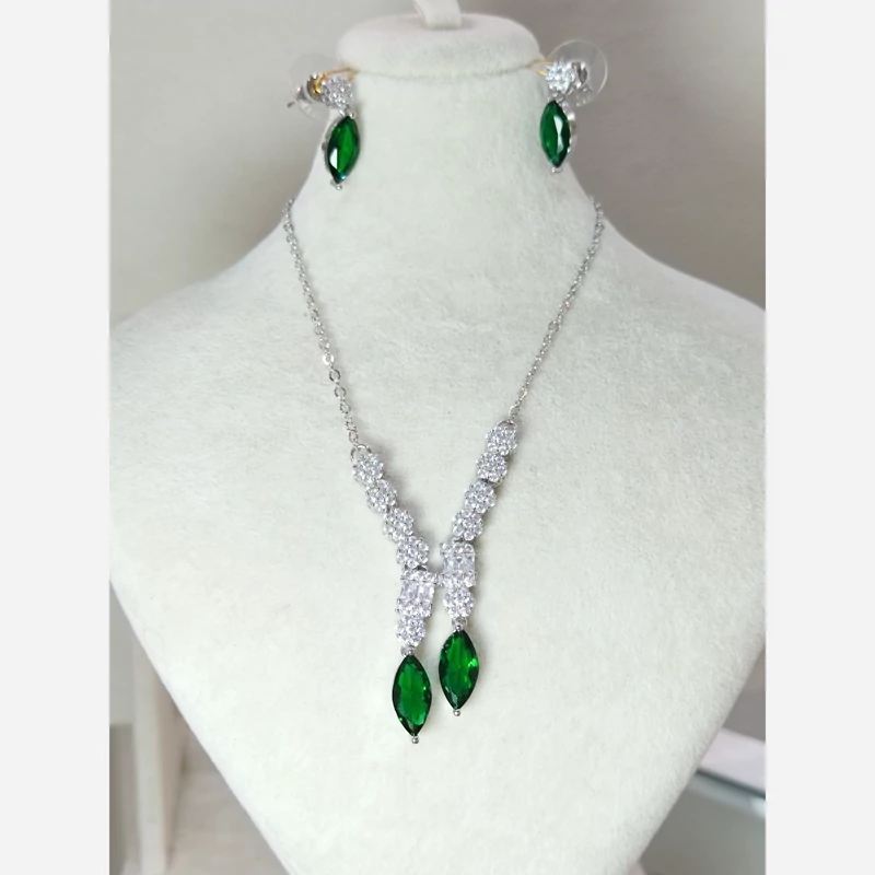 نیم ست جواهری پاپیونی زمردی مناسب هدیه (پس کرایه)