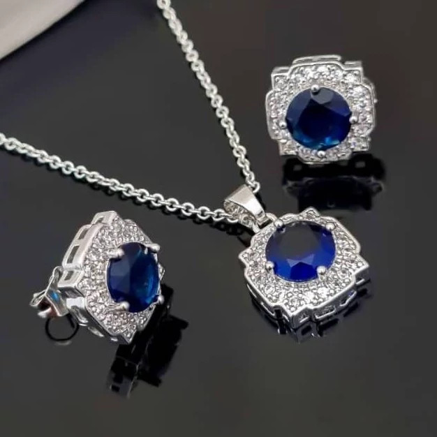 نیم ست استیل جواهری طرح یاقوت کبود(پس کرایه)