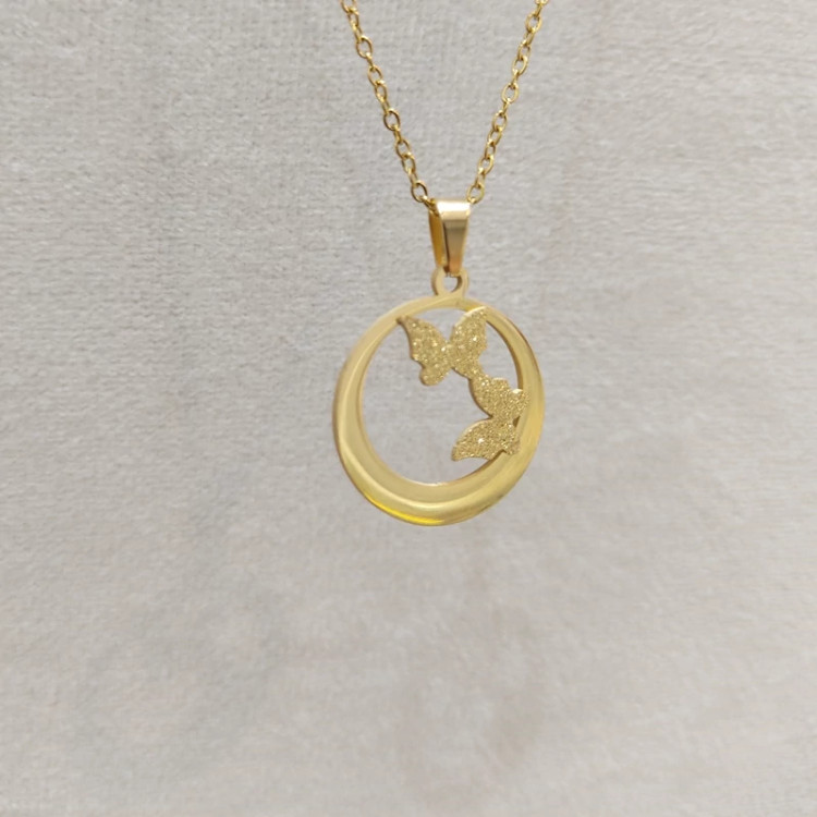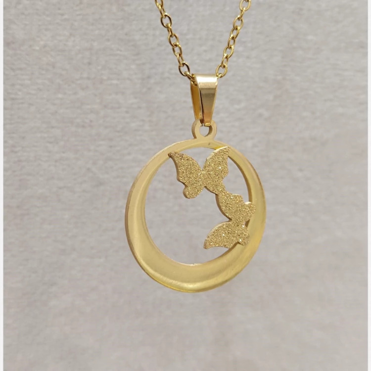 گردنبند و گردن آویز استیل طرح پروانه ای رنگ ثابت ضد حساسیت