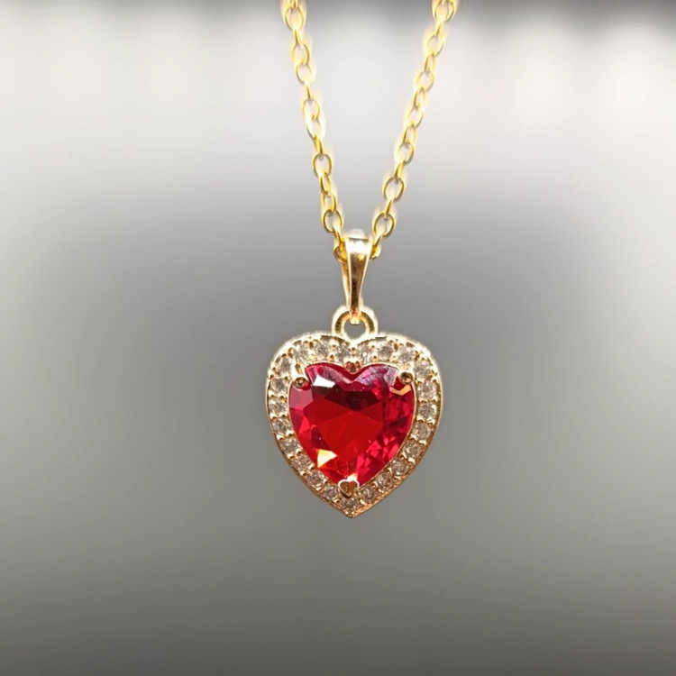 گردنبند قلب جواهری ژوپینگ طرح یاقوت