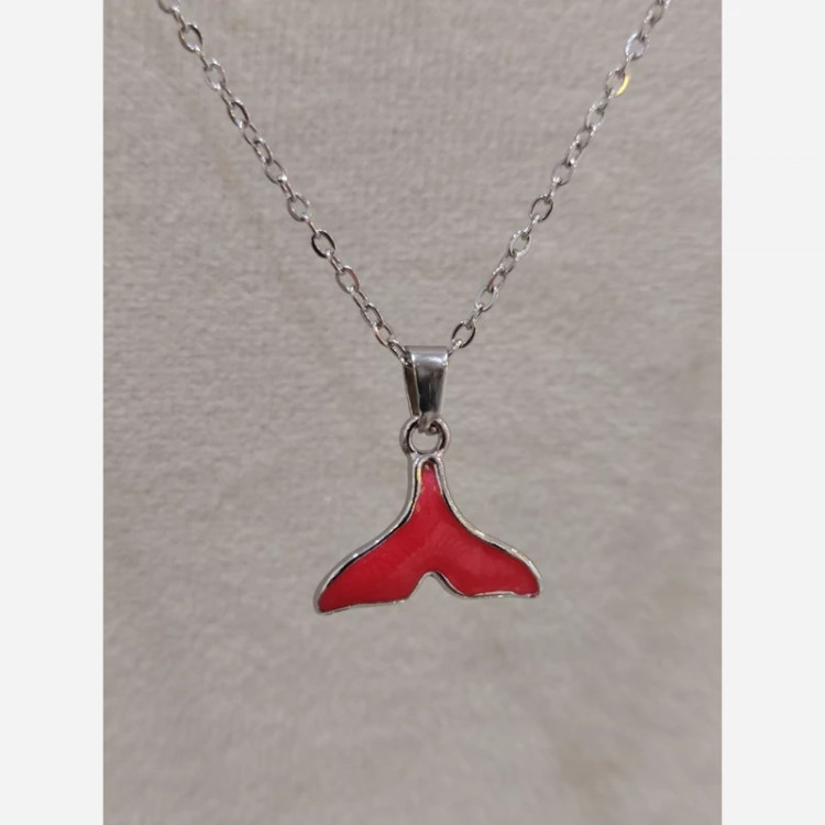 گردن آویز دم وال قرمز نقره ای( پس کرایه)
