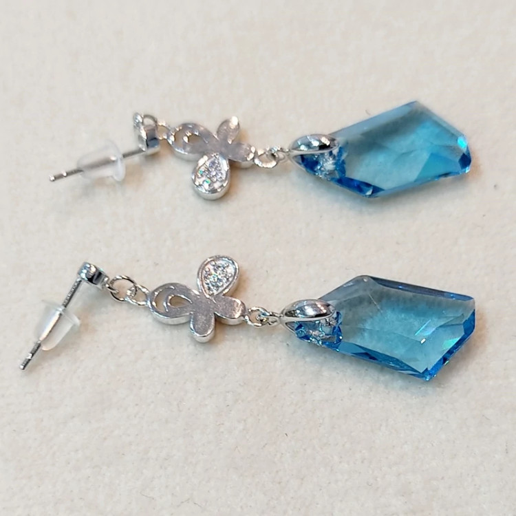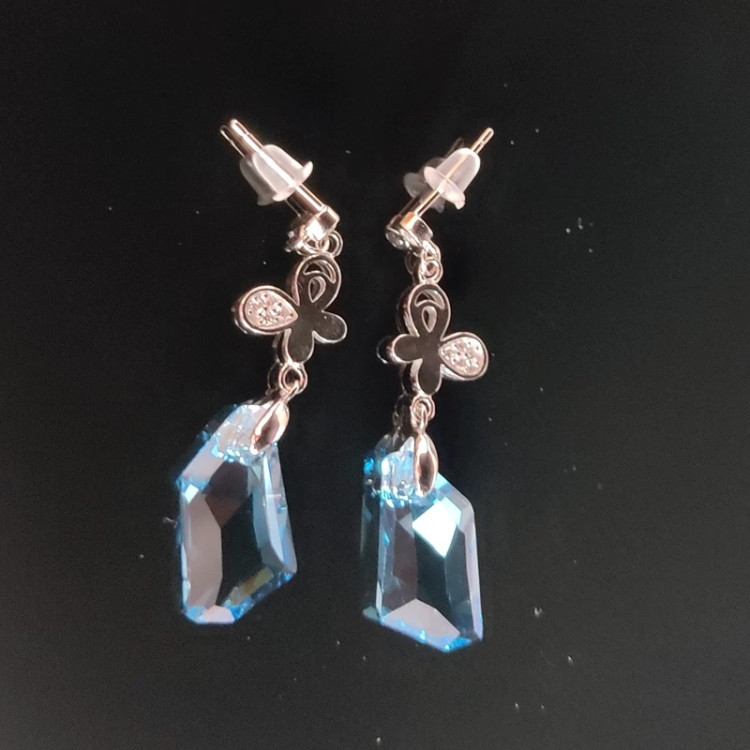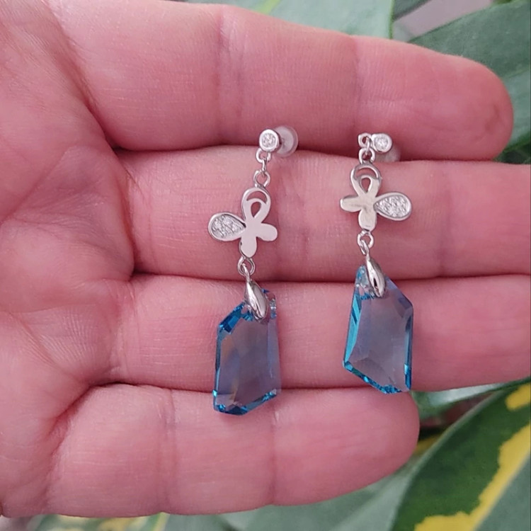 گوشواره آویز نقره با نگین سوارسکی (پس کرایه)
