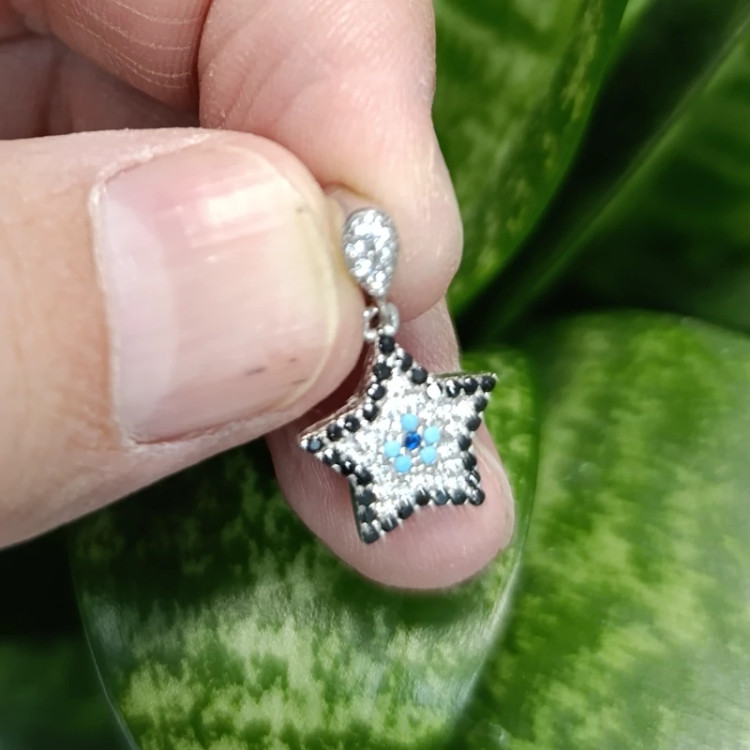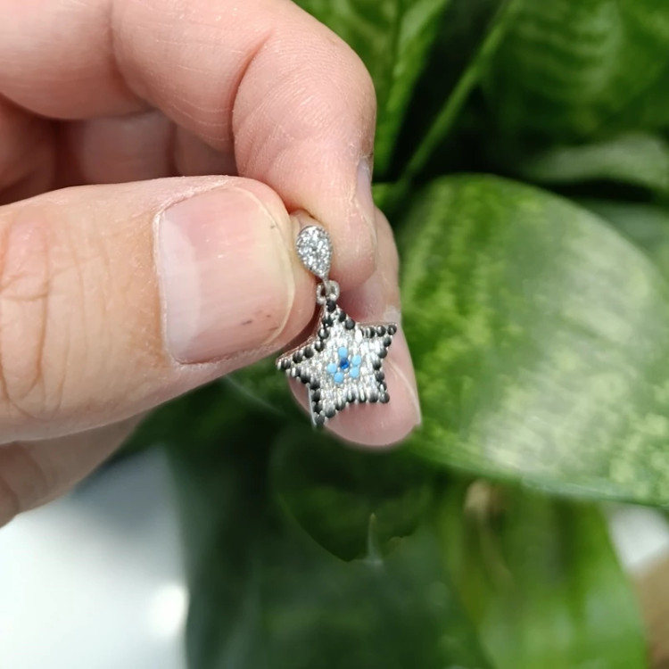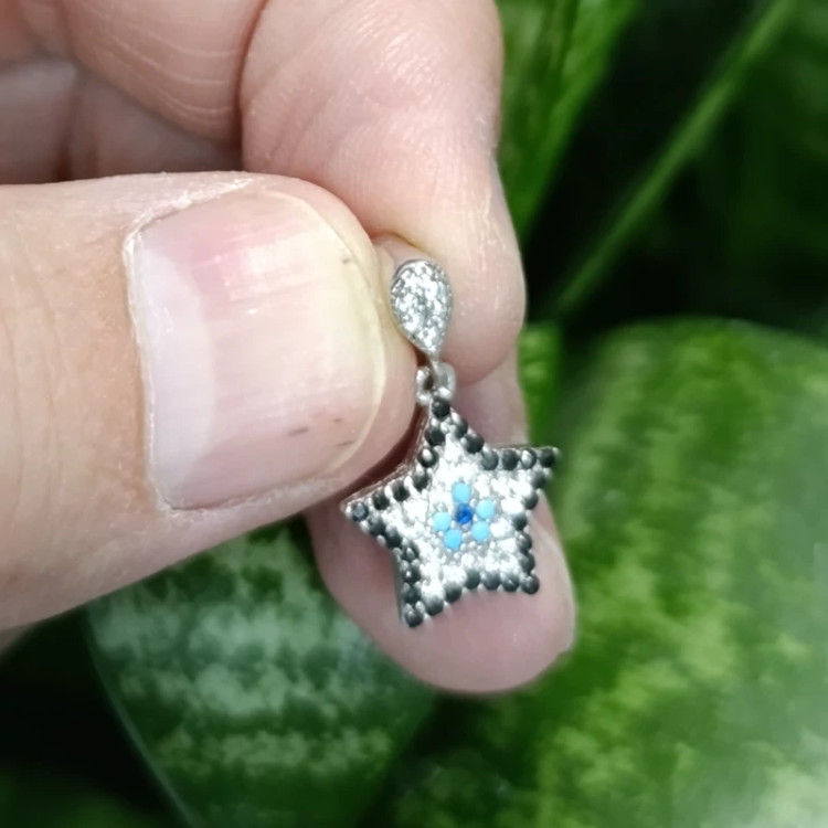 گردن آویز نقره جواهری چشم نظر طرح ستاره(پس کرایه)