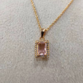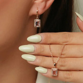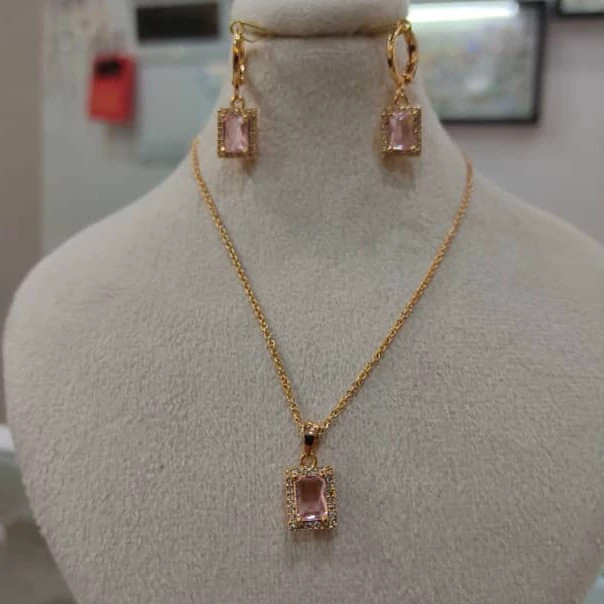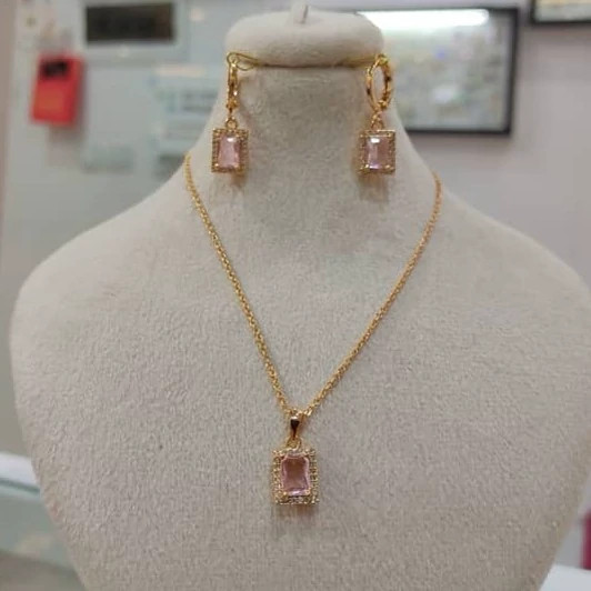نیم ست طرح طلا شامل گوشواره و پلاک و زنجیر با نگین صورتی بسیار زیبا و درخشان