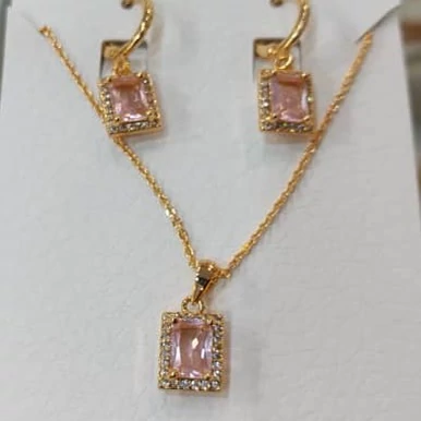 نیم ست طرح طلا شامل گوشواره و پلاک و زنجیر با نگین صورتی بسیار زیبا و درخشان