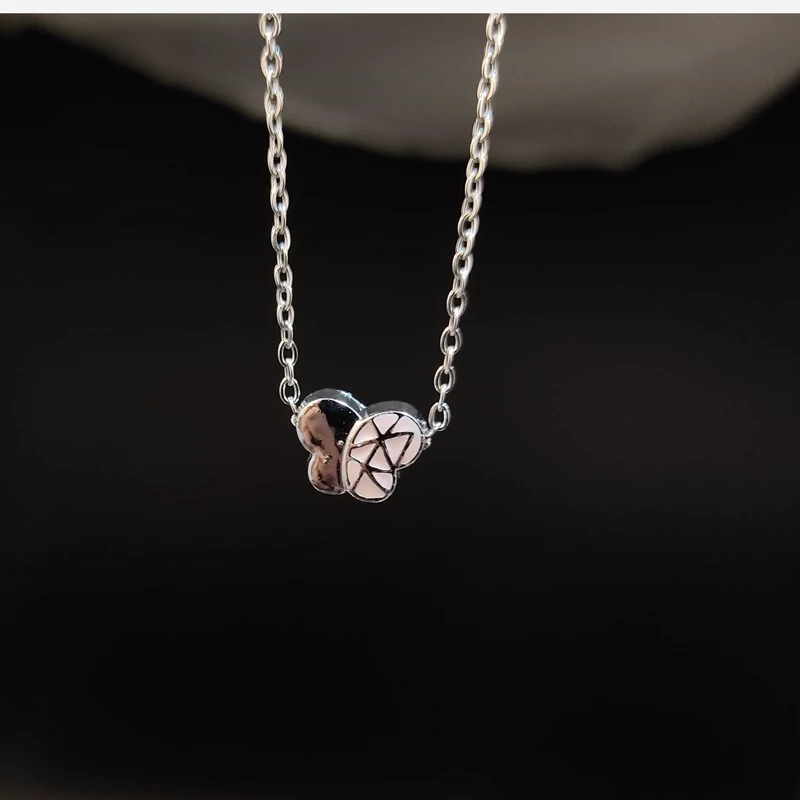 گردن آویز پروانه ای صورتی نقره ای