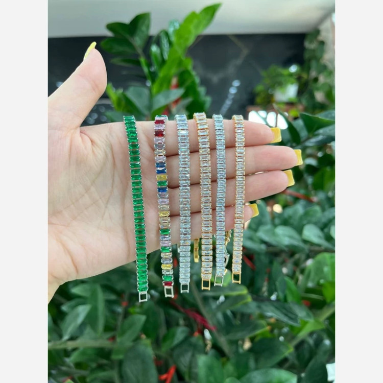 دستبند تنیسی زنانه با نگین های طرح زمرد یاقوت سرخ یاقوت کبود و سفید