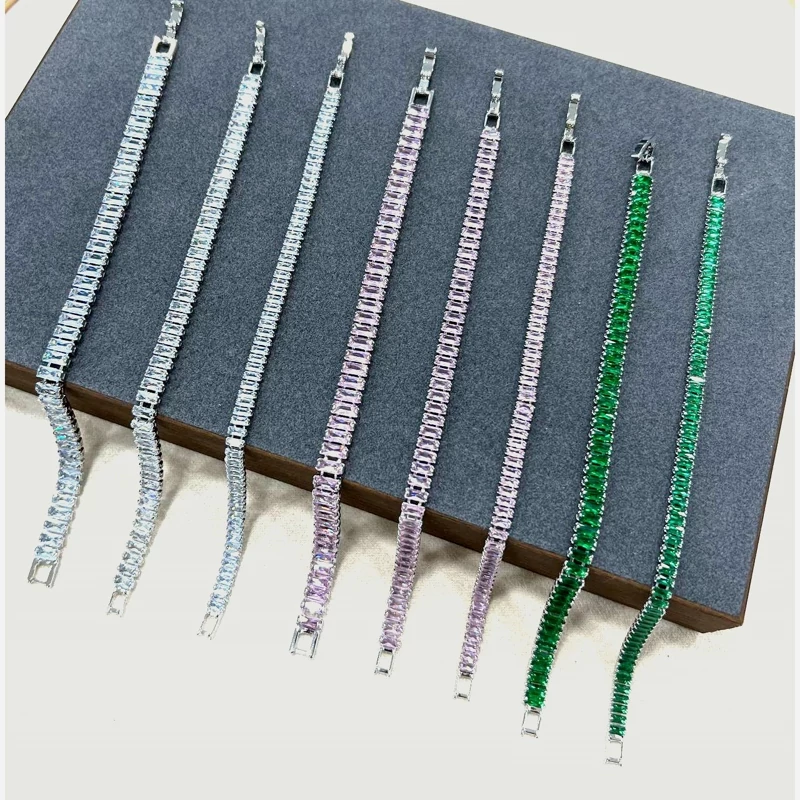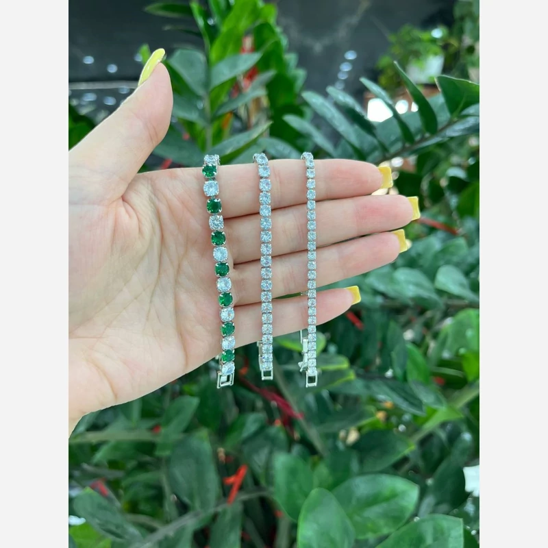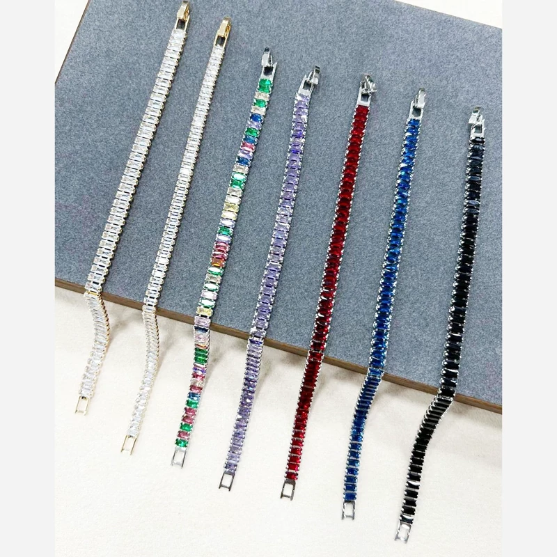 دستبند تنیسی زنانه با نگین های طرح زمرد یاقوت سرخ یاقوت کبود و سفید
