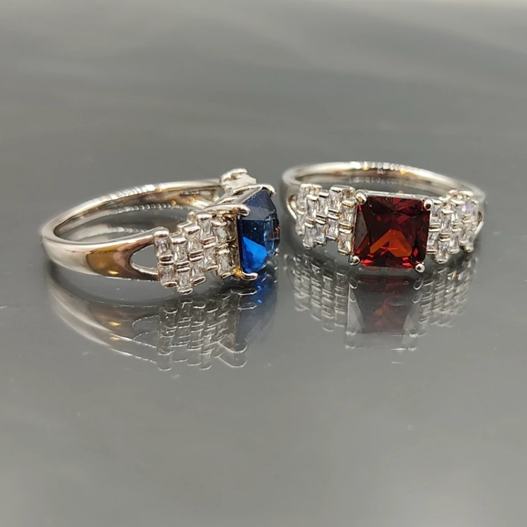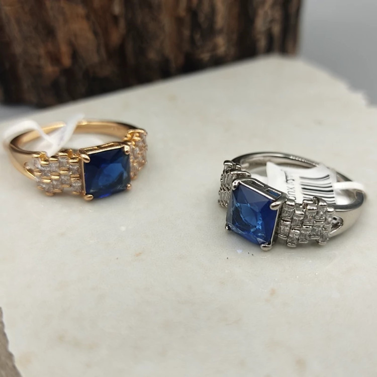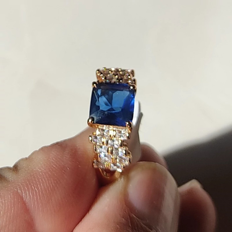 انگشتر زنانه جواهری با نگین طرح یاقوت کبود بسیار شیک امروزی مناسب مجالس مخصوص خانمهای جوان و نوجوان و مناسب هدیه