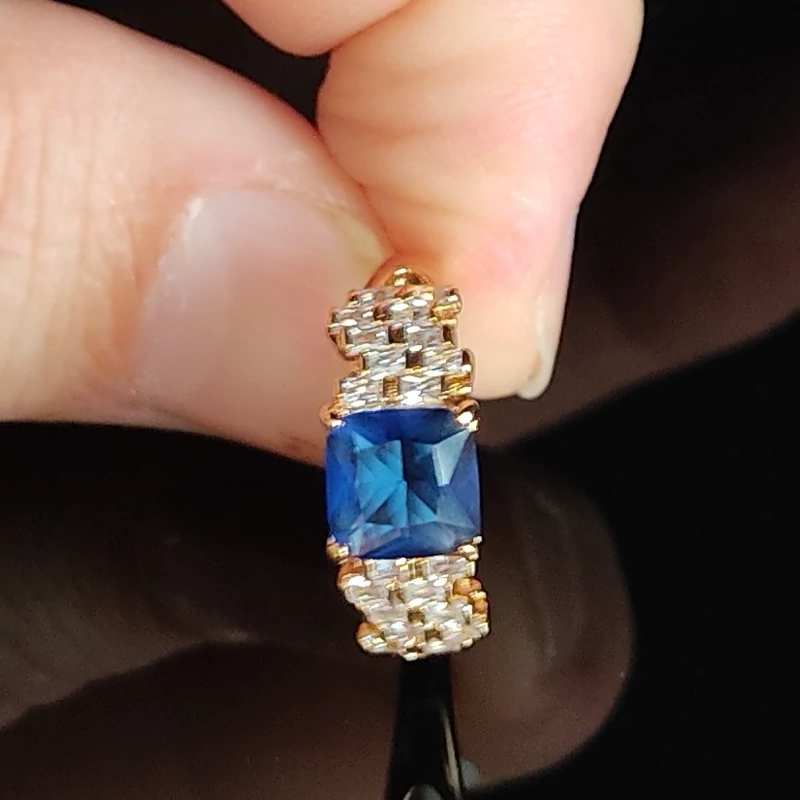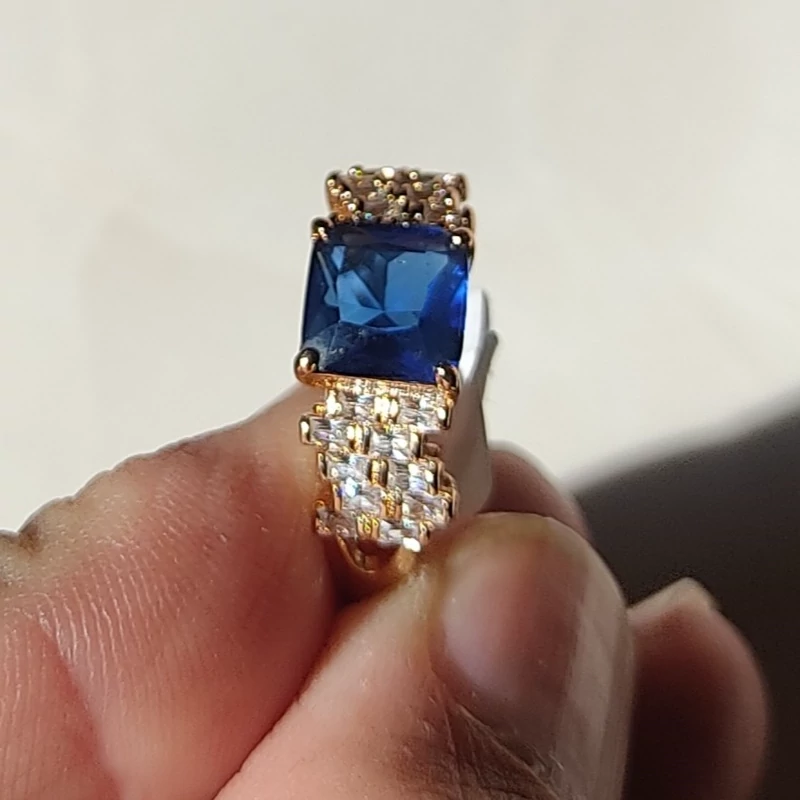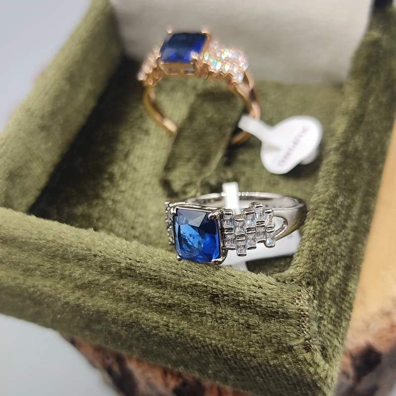 انگشتر زنانه جواهری با نگین طرح یاقوت کبود بسیار شیک امروزی مناسب مجالس مخصوص خانمهای جوان و نوجوان و مناسب هدیه