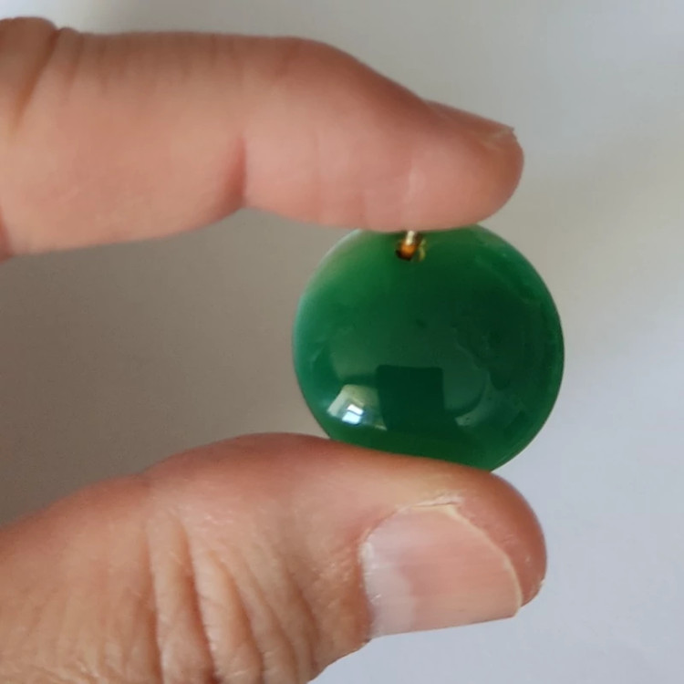 گردن آویز عقیق سبز گرد با قطر یک و نیم سانتیمتر بسیار خوش رنگ و کم نظیر